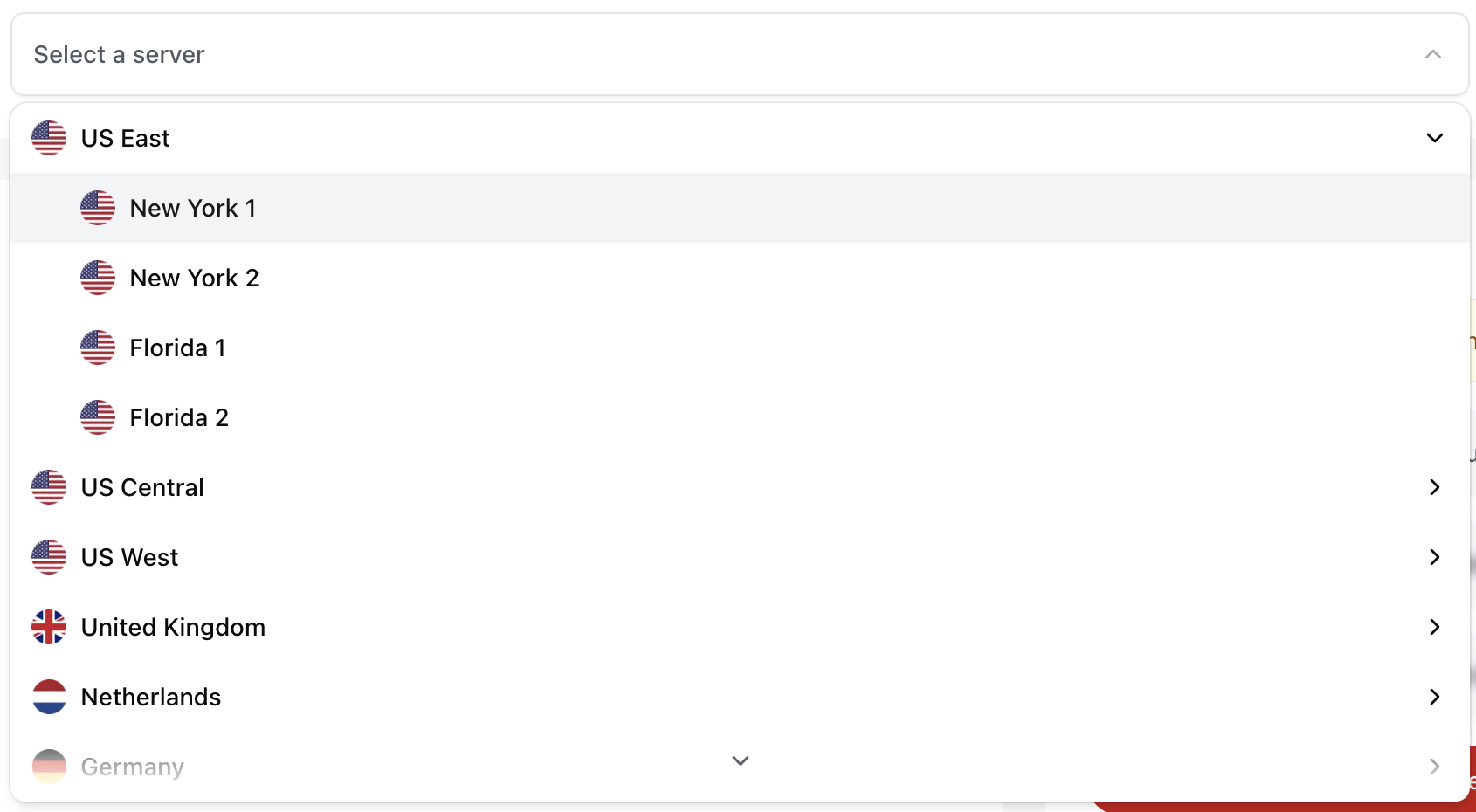 Use the server dropdown menu to choose your preferred server location.